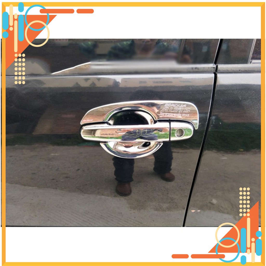 Bộ 8 ốp tay và hõm cửa altis 2016-2020 Được ngoại hình riêng cho xe có thiết kế tinh tế đẳng cấp Sản phẩm khiến cho bằng chất liệu nhựa mạ crom sáng bóng theo thời gian Lắp đặt tiện dụng, giúp trang hoàng và chống xước cho cánh cửa Bộ sản phẩm gồm 8 chi tiết lắp cho 4 cánh cửa xe