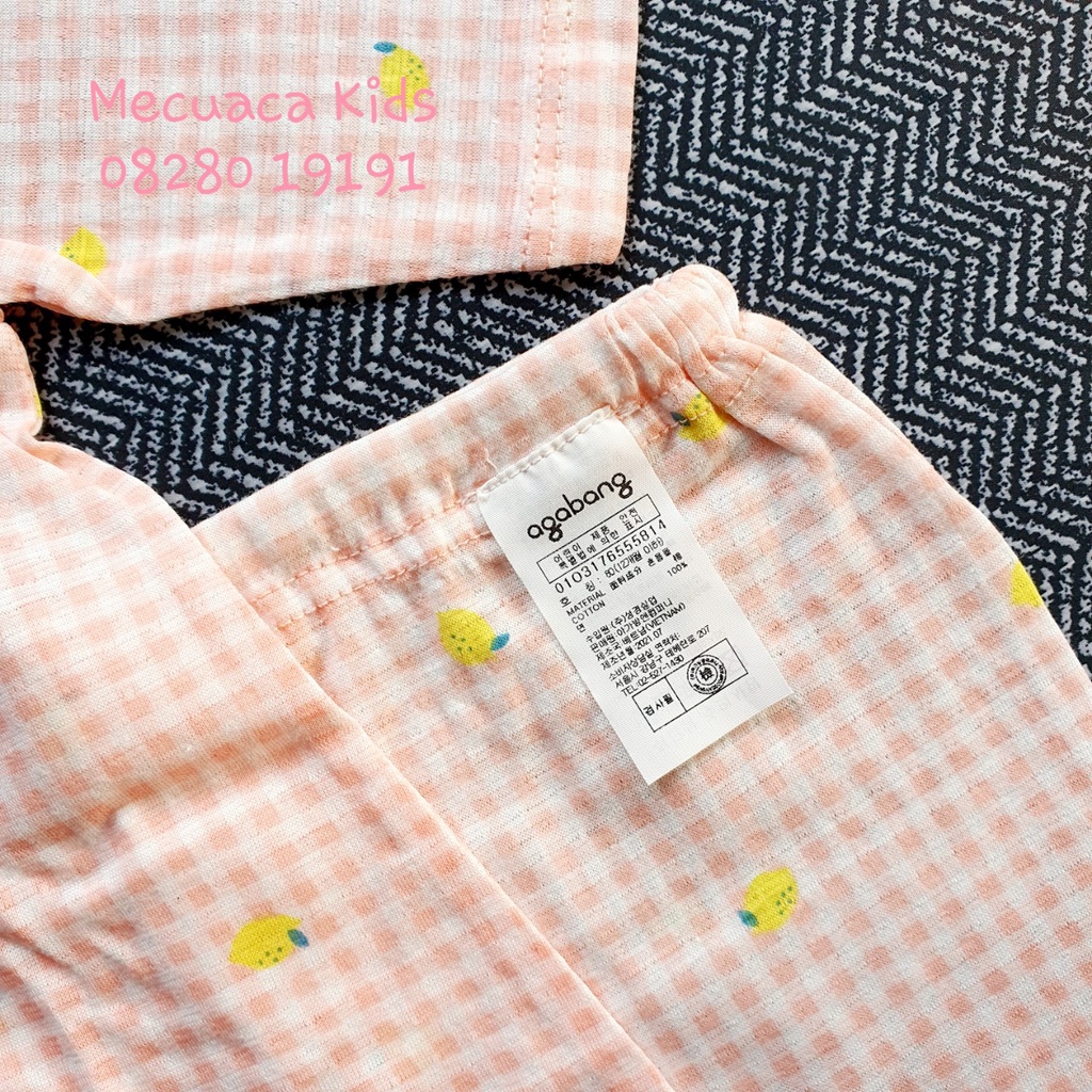 Giới thiệu [80] Bộ mặc nhà, bộ ngủ lửng cotton giấy hè thu màu cam hồng kẻ quả chanh Agabang cho bé gái xuất Hàn dư xịn