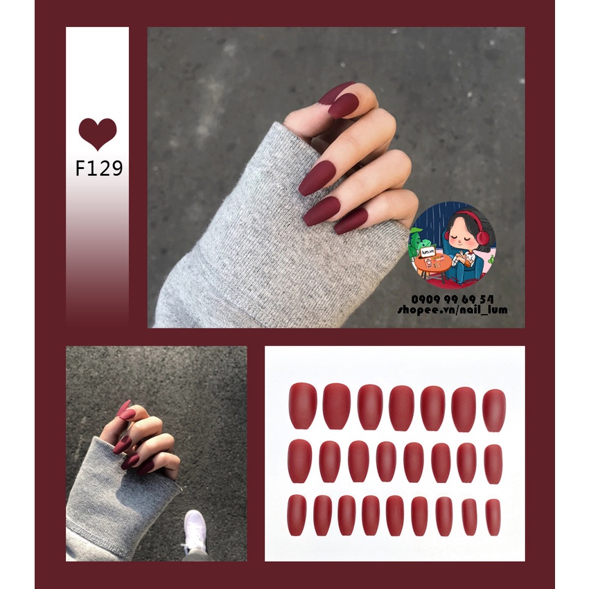 ----------------------------------------------------------------------------- HƯỚNG DẪN SỬ DỤNG 1. Lau sạch bề mặt móng 2. Ướm thử móng giả sao cho vừa móng thật. (nếu móng tay bạn quá nhỏ có thể dùng dũa 2 bên cạnh của móng giả cho vừa với ngón tay của bạn) 3. Dùng keo bôi đều lên móng giả sau đó dán lên móng thật (giữ khoảng 10-15s) 4. Khi tháo móng ra có thể dùng chanh hoặc nước rửa móng AXETON để RỬA SẠCH KEO LƯU Ý : 1 bộ móng sử dụng được nhiều lần, có thể ngâm nước thoải mái * Màu sắc sản phẩm có thể chênh lệch với thực tế từ 10 - 15% do ảnh hưởng của các yếu tố ánh sáng, chất lượng ảnh và chế độ hiển thị màu sắc trên các thiết bị điện thoại và máy tính khác nhau... ----------------------------------------------------------------------------- CÁC NGHÀNH HÀNG - Phụ kiện tóc: Cài - Cột - Kẹp - Băng đô - Phụ kiện Bé Gái - Bông tai - Khuyên tai - Khuyên kẹp vành - Set bông tai giá tốt - Nhẫn bạc S925 - Nhẫn mặt to sang chảnh - Nhẫn đeo theo bộ - Vòng tay bạc S925 - Kiềng - Lắc tay đủ kiểu - Lắc chân - Choker - Vòng cổ sanh chảnh - Dây chuyền dự tiệc - Móng nail giả thời trang - Túi & Ví ----------------------------------------------------------------------------- 𝑻𝒉𝒐̂𝒏𝒈 𝒕𝒊𝒏 𝒈𝒊𝒂𝒏 𝒉𝒂̀𝒏𝒈: - Hotline/Z[a]l[o]: 090 999 69 54