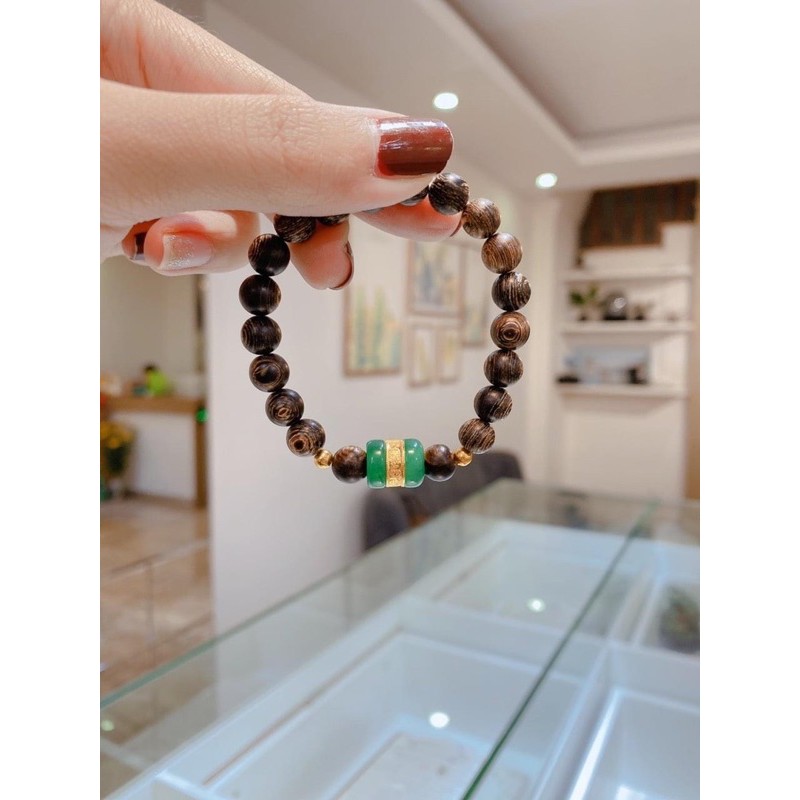 [8mm size nữ] Vòng Tay Trầm Hương Sánh chìm & Tốc mix Lu Thống bạch ngọc - Vòng gỗ nam nữ may mắn - Tự nhiên cao cấp