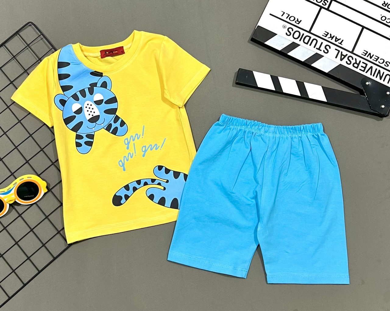 Bộ ngắn tay bé trai vải cotton 4 chiều mịn đẹp, màu sắc bắt mắt, hình in đẹp, không bong tróc dù giặt máy.- Áo nẹp vai áo phối màu quần, quần túi thật, lưng thun bản to không hằn da bé, viền l...