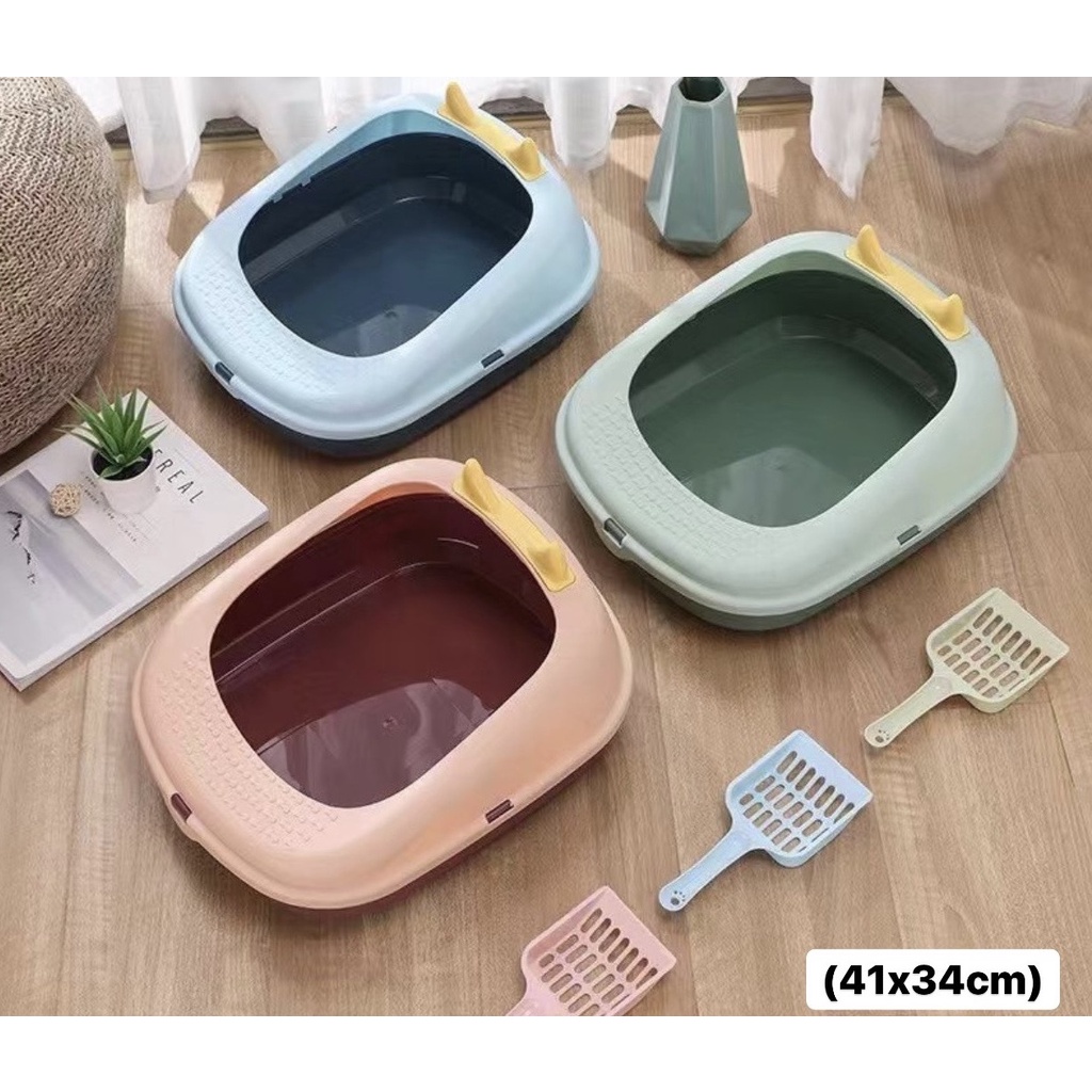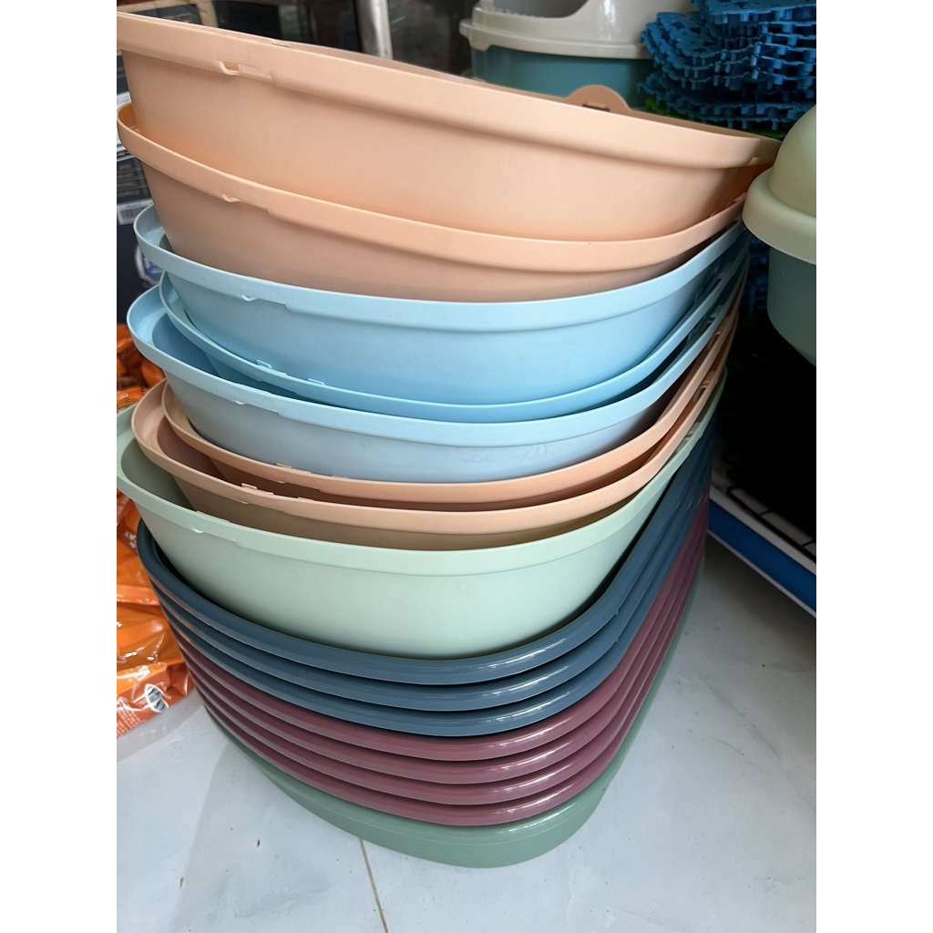 ======================== Chậu vệ sinh cho mèo + xẻng vệ sinh cho mèo Khay cát mèo: Bộ sản phẩm gồm 1 chậu vệ sinh, 1 xẻng vệ sinh. Công dụng: đựng cát mèo 🐈⬛🐈⬛🐈⬛ Thiết kế: - Thiết kế hình ovan nhỏ gọn, bắt mắt. Thành chậu được bo gập vào phía trong, ngăn cát mèo bắn ra ngoài. - Phía trước chậu vệ sinh được hạ thấp, giúp mèo ra vào dễ dàng hơn. - Màu sắc: khay cát mèo có 3 màu như hình ( míc màu ngẫu nhiên) - Chất liệu: Chậu vệ sinh cho mèo được làm từ nhựa ABS, rất bền và dẻo dai. - Kích thước: 37 x 20 x 18cm
