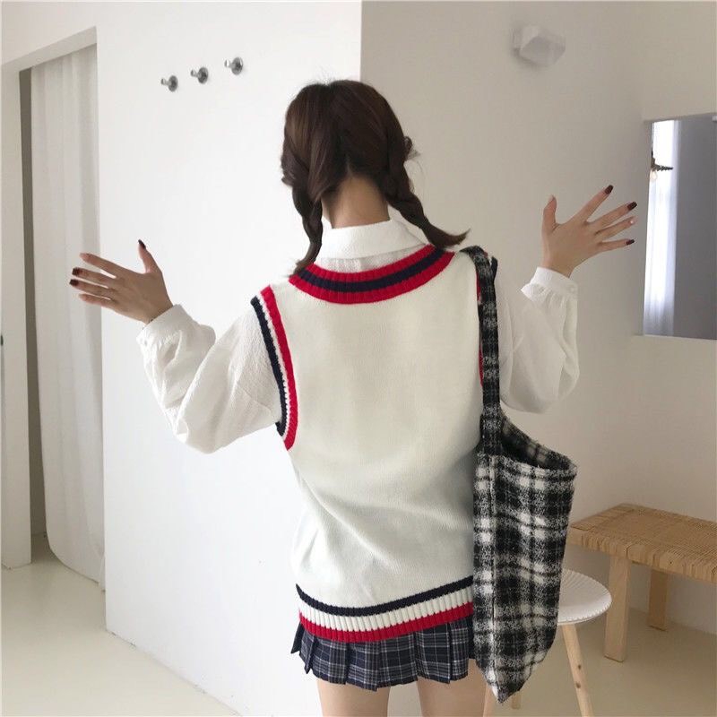 Phong cách: ngọt ngào và trẻ trung / sinh viên đại học Các yếu tố / kỹ thuật phổ biến: Dệt đặc, khâu, Kiểu áo: Dáng rộng Cách mặc: Áo tròng đầu Hình thức kết hợp: Một mảnh Chiều dài / chiều dài tay áo: Trung bình / không tay Cổ áo: cổ chữ V Độ tuổi thích hợp: thanh niên (18-30 tuổi) ✨ ************************************ ✨