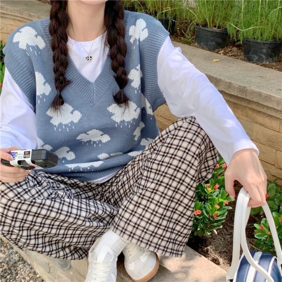 Phong cách: ngọt ngào và trẻ trung / sinh viên đại học Các yếu tố / kỹ thuật phổ biến: Dệt đặc, khâu, Kiểu áo: Dáng rộng Cách mặc: Áo tròng đầu Hình thức kết hợp: Một mảnh Chiều dài / chiều dài tay áo: Trung bình / không tay Cổ áo: cổ chữ V Độ tuổi thích hợp: thanh niên (18-30 tuổi) ✨ ************************************ ✨