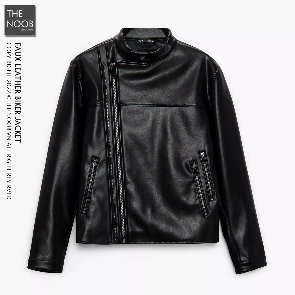 Áo chất liệu da tổng hợp, mặt trong lót dù, thiết kê dạng khóa chéo bất đối xứng lạ mắt