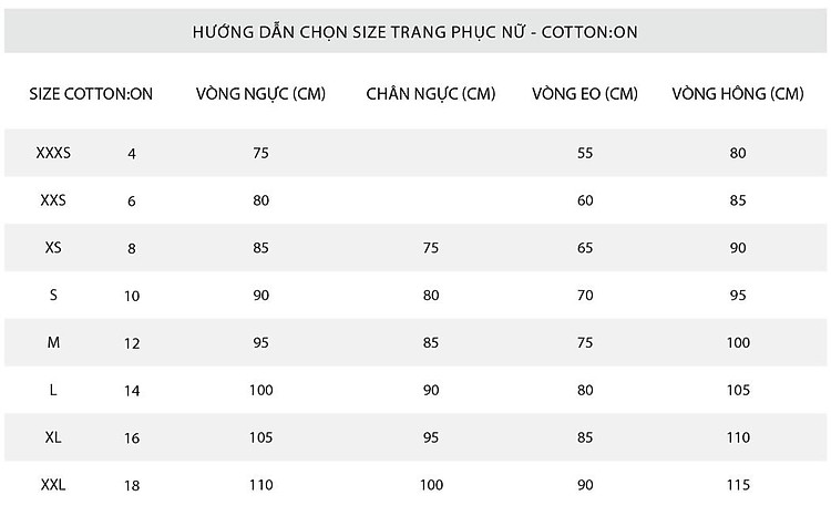 Bảng hướng dẫn chọn size: