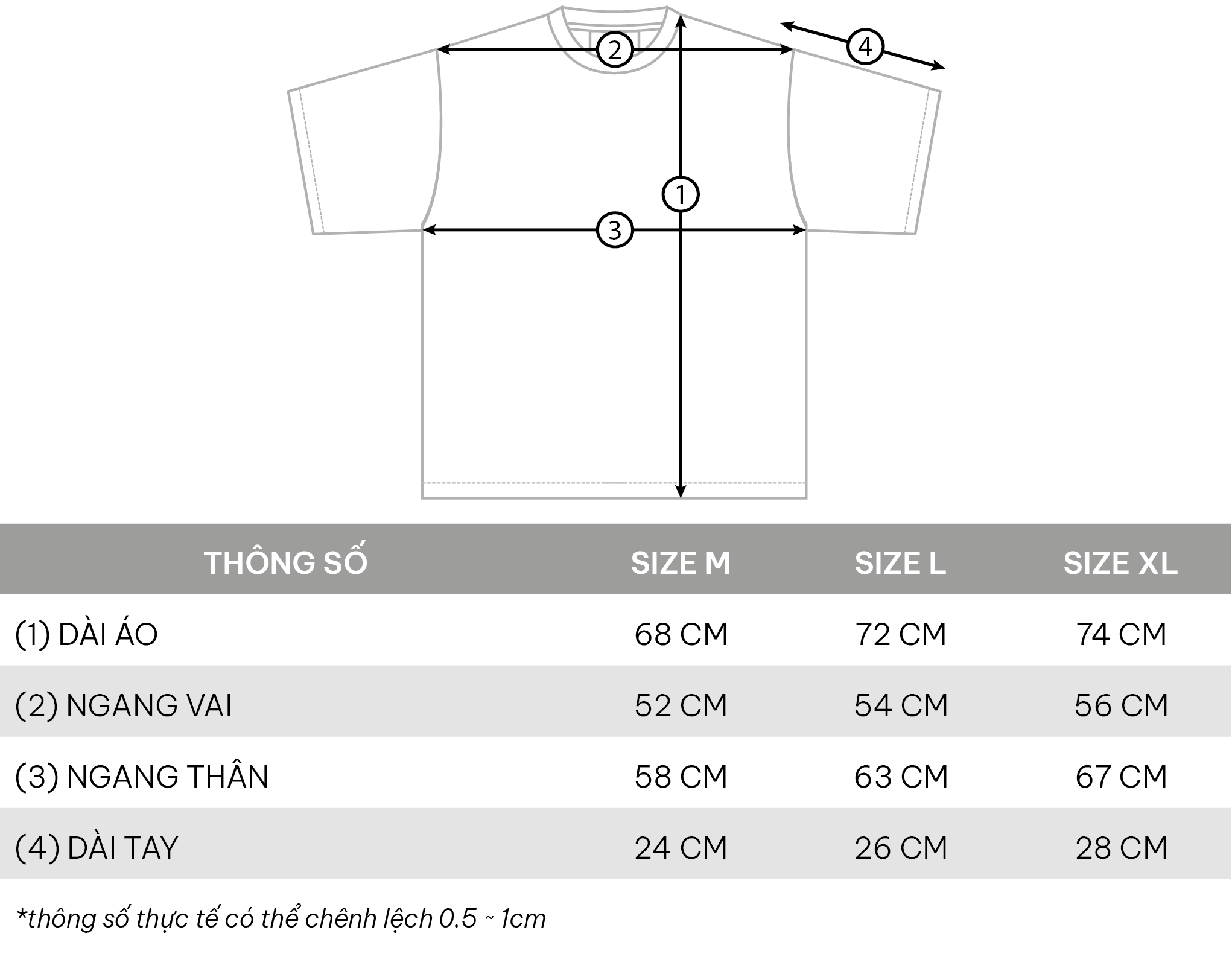 - Đối với các sản phẩm áo thun (T-shirt, P), các sản phẩm có hình in : 6 tháng