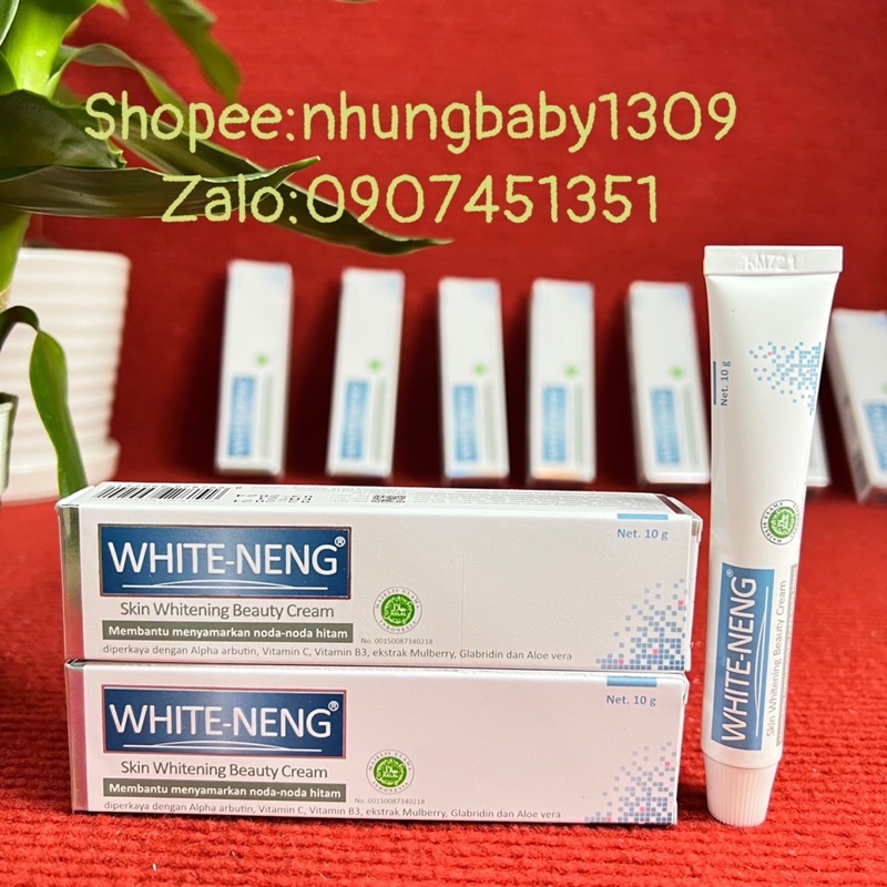 WHITE-NENG giúp giảm các đốm đen. Phong phú với Alpha Arbutin, VItamin C, vitamin B3 Chiết xuất Mullberrry, Cam thảo và Nha đam. ♻WHITE-NENG giúp làm sáng khuôn mặt. Chiết xuất nha đam còn có chức năng dưỡng ẩm cho da ♻Cách sử dụng: Thoa đều lên bề mặt da, đặc biệt là những nốt mụn đầu đen hoặc đầu đen, ngày 2 lần vào buổi sáng và tối sau khi rửa sạch mặt. Massage nhẹ nhàng cho đến khi kem thẩm thấu hoàn toàn. Chờ 10 phút trước khi sử dụng mỹ phẩm. Vào ban ngày, sử dụng kem chống nắng cho da mặt để đạt hiệu quả tối ưu.