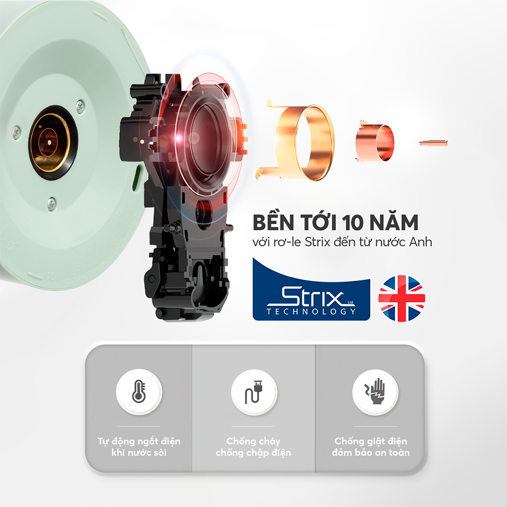 Trang bị rơ le Strix – thương hiệu nổi tiếng toàn cầu, mang đến độ bền vượt trội, độ chính xác cao và khả năng vận hành an toàn, kéo dài tuổi thọ cho sản phẩm.