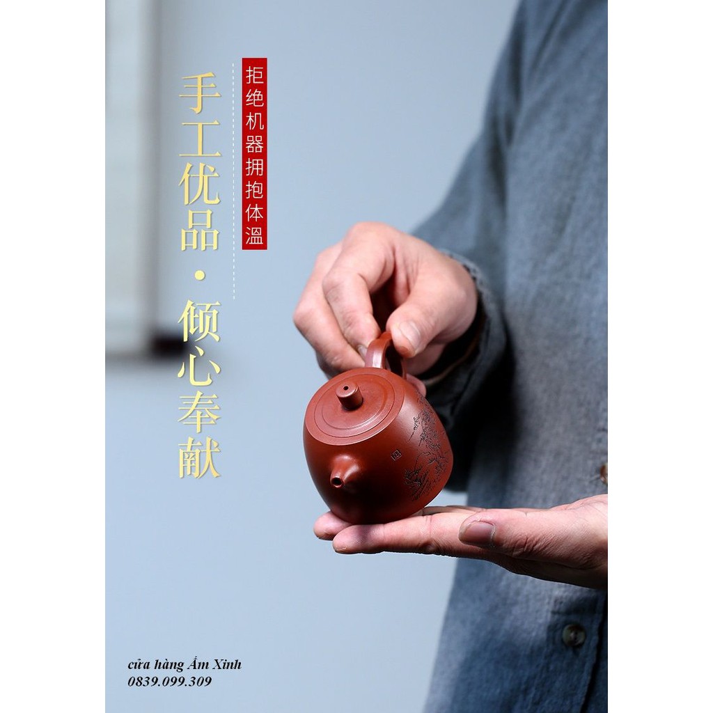 * 5 CAM KẾT - Hàng thật như hình.- Hàng bền, đẹp.- Không giống hoàn hàng!- Hỗ trợ khách nhiệt tình trước, đang và sau khi mua hàng! Ấm tử sa Nghi Hưng có gì đặc biệt? Ấm tử sa là một loại ấm pha trà được làm bằng đất (Đá) đặc biệt, chúng được nung ở nhiệt độ cao và không tráng men. Về căn bản ấm được gọi là tử sa vì loại ấm này thường có màu tím, xuất phát từ vùng Nghi Hưng, Trung Quốc.