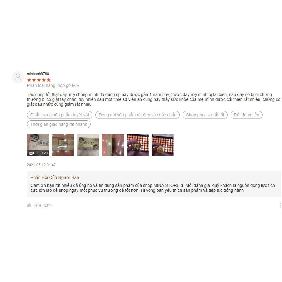 ✔LỜI HỨA CỦA MINA STORE - BÁN HÀNG VÌ CHỮ TÂM!!! - Mina Store là cửa hàng chuyên kinh doanh, nhập khẩu mỹ phẩm từ các nước Hàn Quốc, Pháp, US, Trung Quốc đã được cấp giấy phép lưu hành. - Uy tín được đảm bảo qua chính sách sẵn sàng trả hàng, hòan hàng nếu khách hàng chứng minh được hàng tại Mina là fake. - Là khách hàng, bạn sẽ được: 👉 Cam kết chất lượng hàng chính hãng. 👉 Hoàn tiền 200% nếu phát hiện hàng Fake. 👉 Cam kết được đổi trả hàng trong vòng 7 ngày. 👉 Được tư vấn về da và sản phẩm phù hợp 24/24. ----------------------------------------------------------------------------- CAM KẾT - Hàng Chính Hãng, Giá Cạnh Tranh Nhất - Hoàn Tiền 100% Nếu SP Ko Đúng Mô Tả ----------------------------------------------------------------------------------- Bổ Não, An Cung Hộp Gỗ Samsung GumJeeHwan Hàn Quốc Xuất xứ : Korea Hàn Quốc Quy cách : Hộp 60 viên x 3,75gr