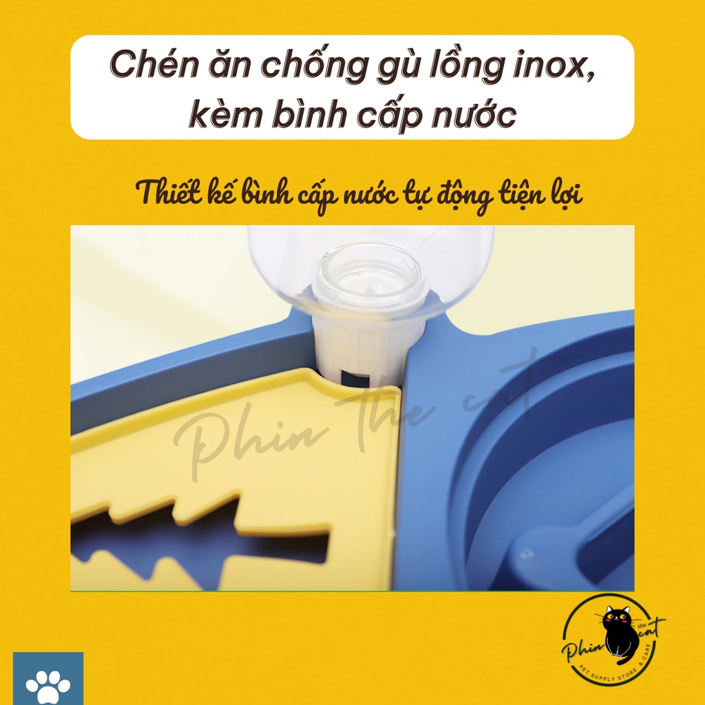 Giới thiệu [Ảnh thật] Chén ăn chống gù, lồng inox, kèm bình cấp nước - Dễ tháo lắp vệ sinh, bảo vệ cột sống Boss yêu | phinthecat
