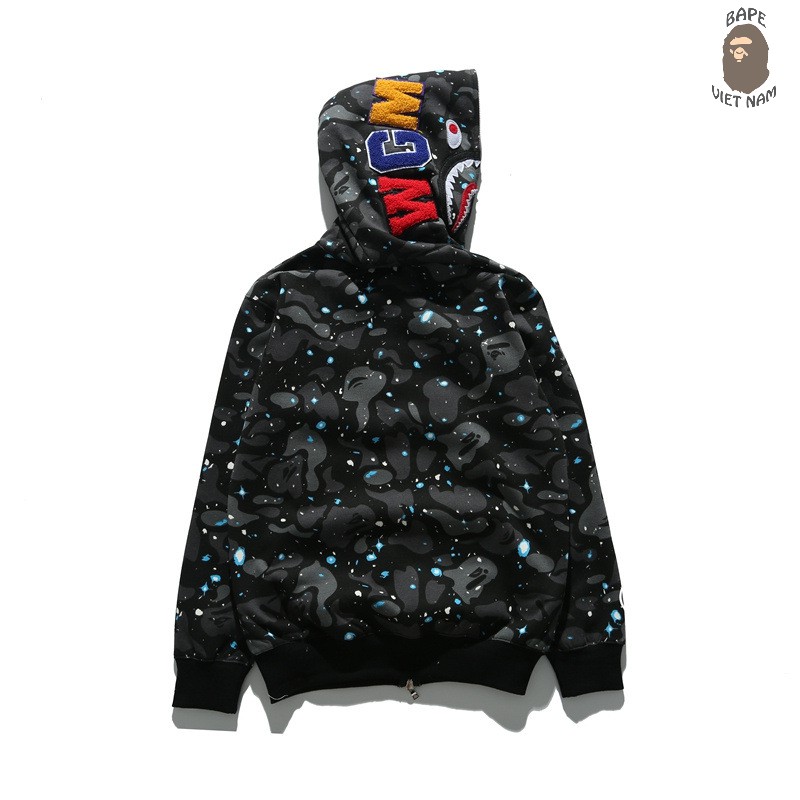 Giới thiệu [Ảnh thật + FREESHIP] Jacket Bape Shark Galaxy fullzip Phát quang trong tối , Áo Hoodie Bape Cá Ngáo