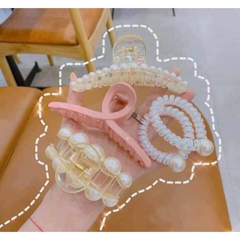 Giới thiệu {Ảnh thật} SET 5 PHỤ KIỆN TÓC HOT TREND, CỘT LÒ XO, BẤU TÓC, KẸP CÀNG CUA, KẸP CÁ MẬP SIZE TOĐÍNH NGỌC TRAI GIẢ ULLZANG
