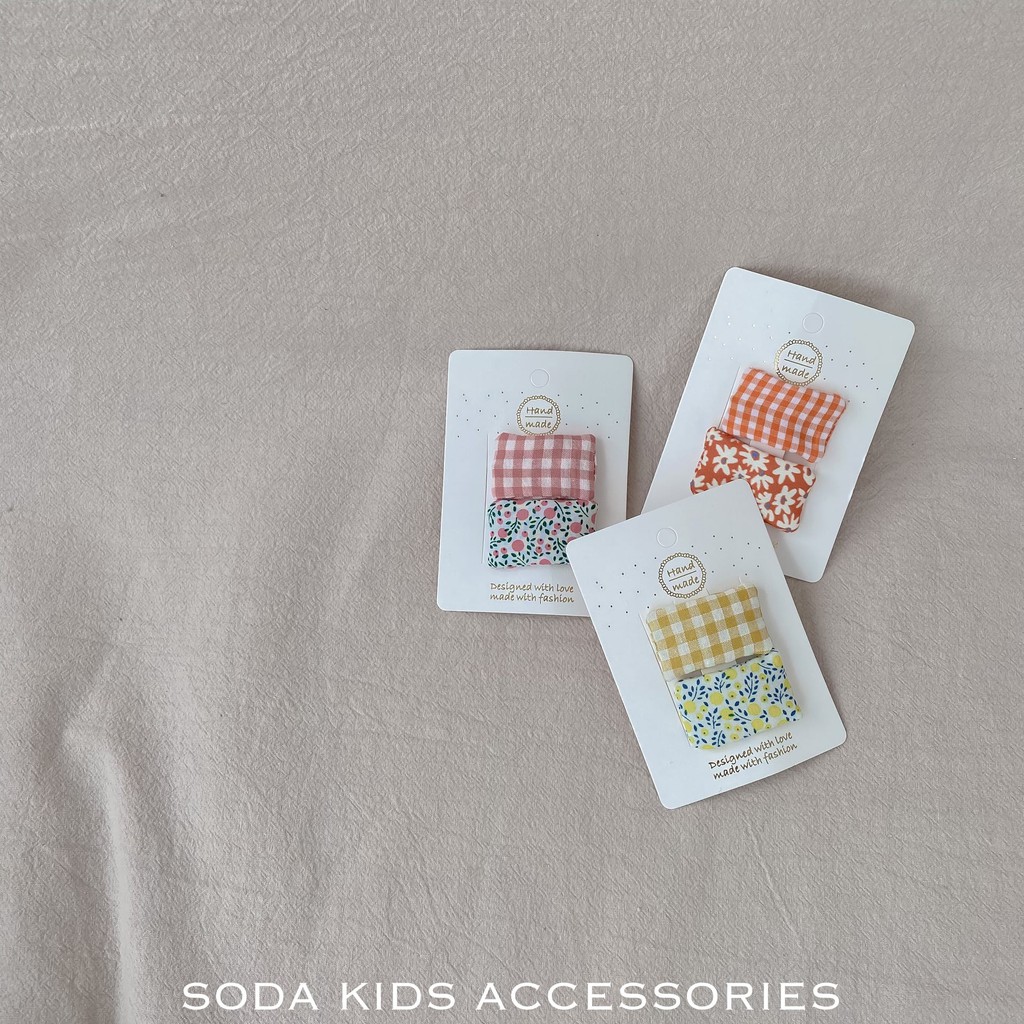 Giới thiệu (Ảnh thật) Set kẹp tóc vải caro và hoa vintage phong cách Hàn cho bé gái