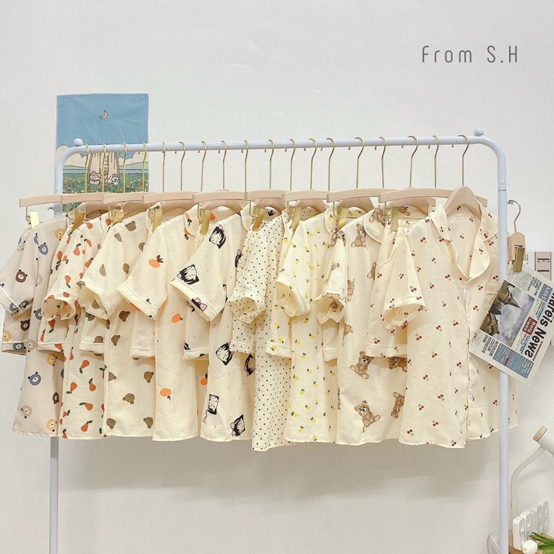 🍃 Pijama nhà em chất đũi xốp thoáng mát, thấm hút mồ hôi, cổ bẻ, viền tay dày dặn cực xinh xắn. Đặc biệt là bảng màu hoạ tiết siu đáng yêu tha hồ lựa chọn nha. Em có up video cận chất xinh lắm nhaaa