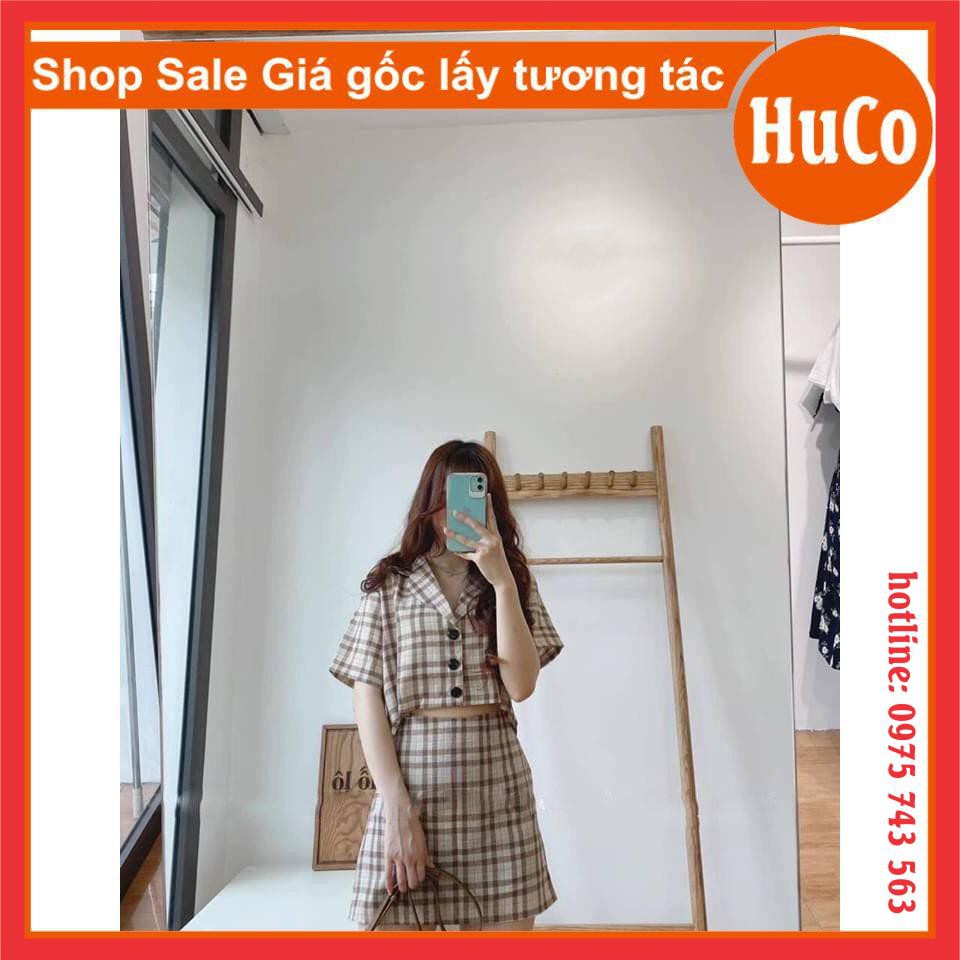 Giới thiệu ảnh thật : sét trang phục nữ - sét áo kẻ crop top và váy kẻ ngắn - freesize giá rẻ nhất