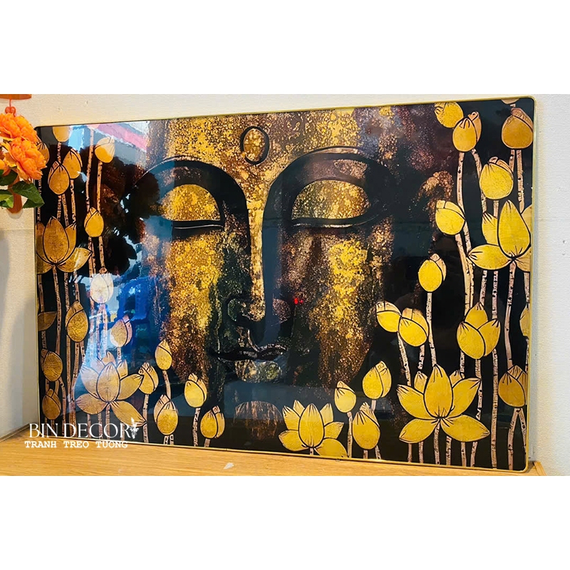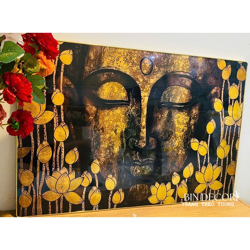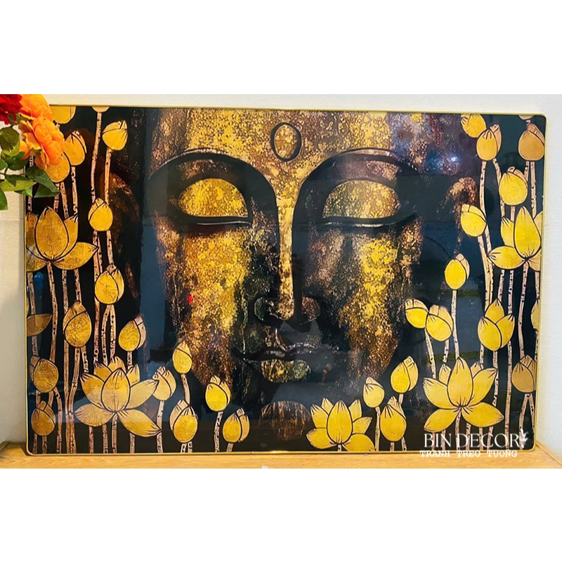 Tranh treo tường trang trí decor phòng thờ phật trong hoa sen vàng