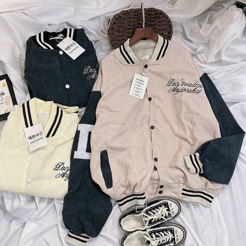 Tên Sản phẩm: Áo khoác Bomber Nhung 2 lớp phối logo thêu DD26 (3 màu - Freesize)