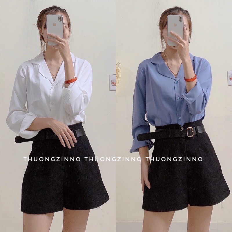 Thời Trang Nữ > Quần đùi > Quần váy || [Ảnh thật/Video]Áo sơ mi cổ vest quốc dân phong cách mới phối chân váy, quần jeans ,quần tây , quần sort bao xinh