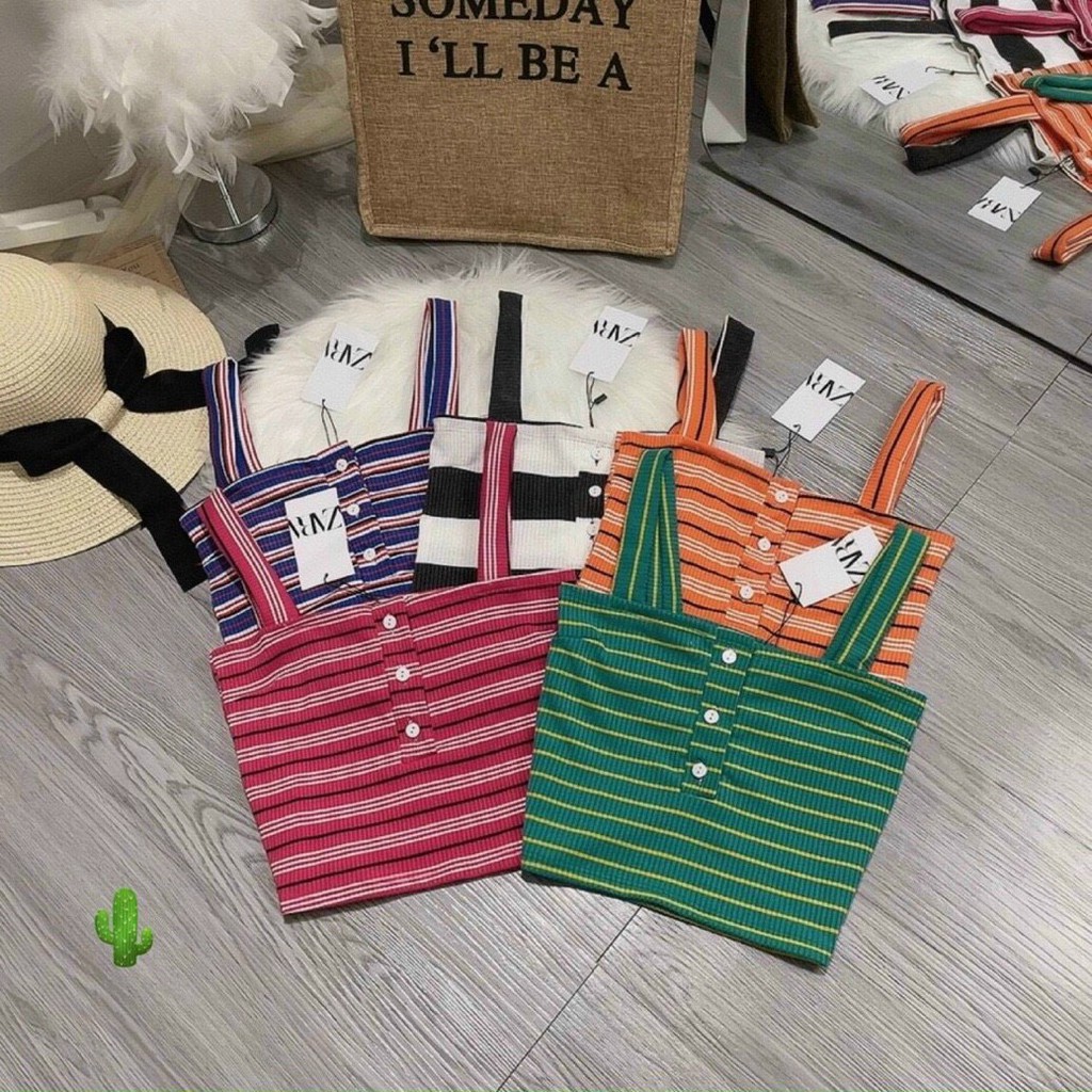 Thời Trang Nữ > Áo > Áo hai dây và ba lỗ || Áo 2 dây bản vuông họa tiết sọc ngang 3 nút trước xinh p.c