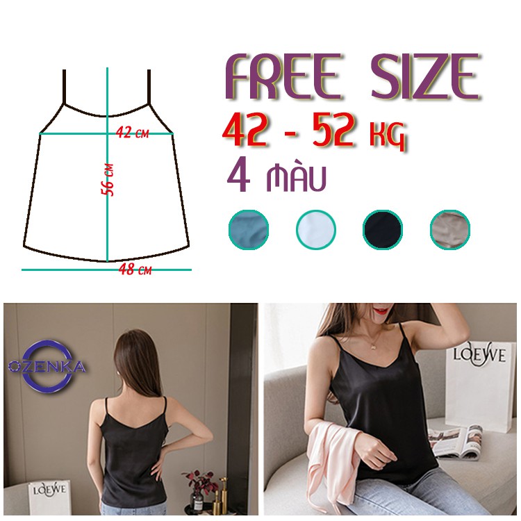 Áo 2 dây lụa đẹp mặc nhà OZENKA , áo ngủ hai dây đi biển free size chất đẹp mát sang chảnh màu đen trắng da mint