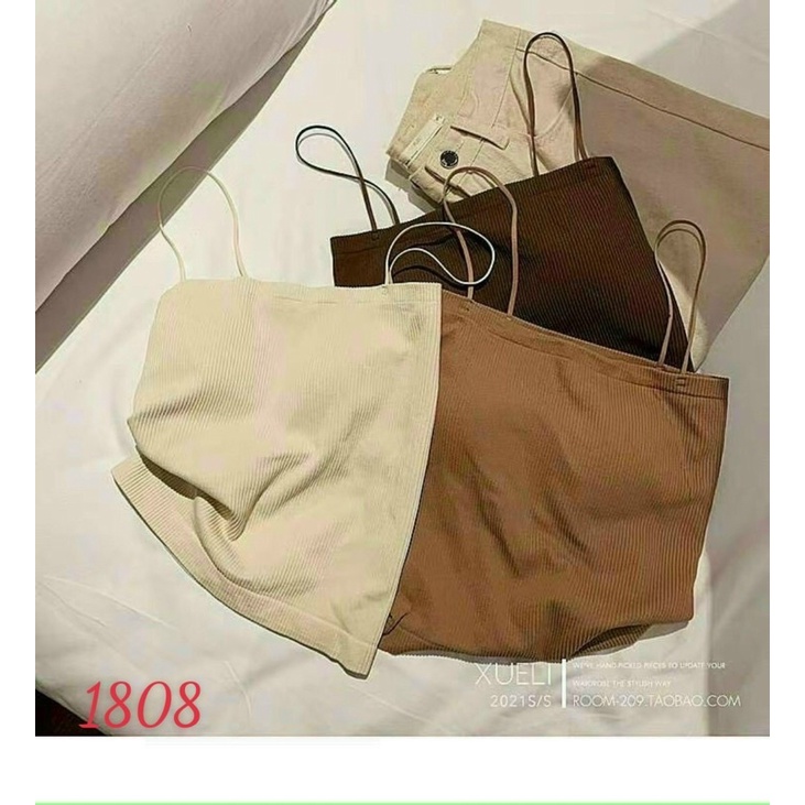 Giới thiệu Áo 2 dây [Minhduongct] ngang ngực Croptop Len Tâm, thun ống ôm body Áo Bra 2 dây len tâm Mã 3003