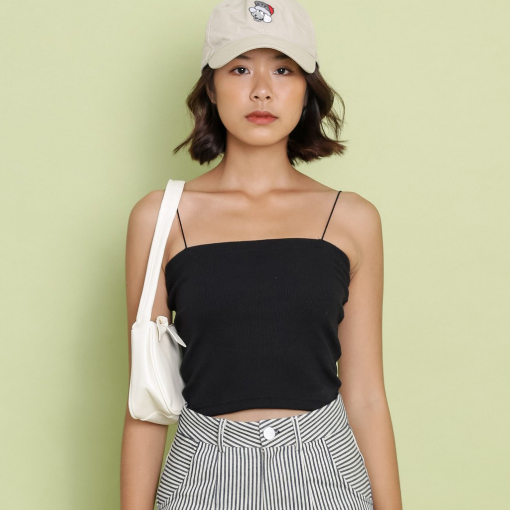 Giới thiệu Áo 2 dây nữ croptop thời trang GAGO nellie crop black màu đen GA2792
