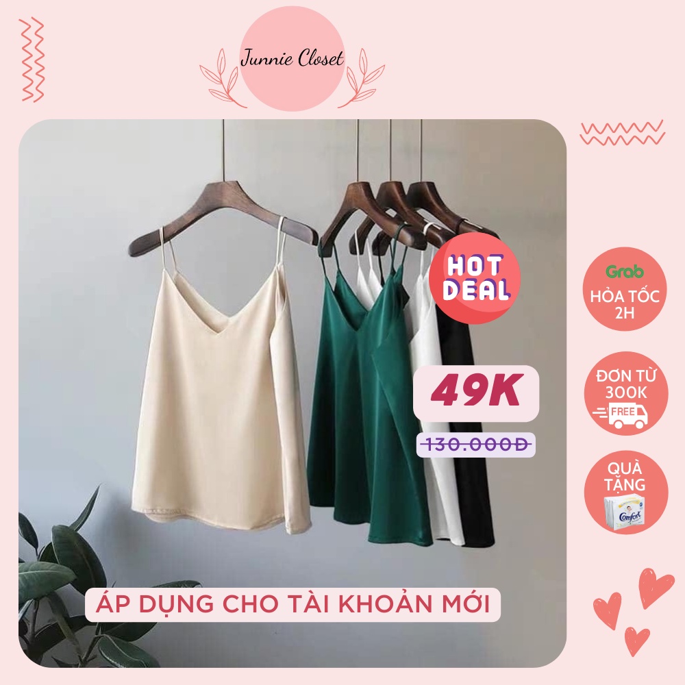 Giới thiệu Áo 2 dây nữ trơn Junnie Closet chất liệu lụa cao cấp dáng suông