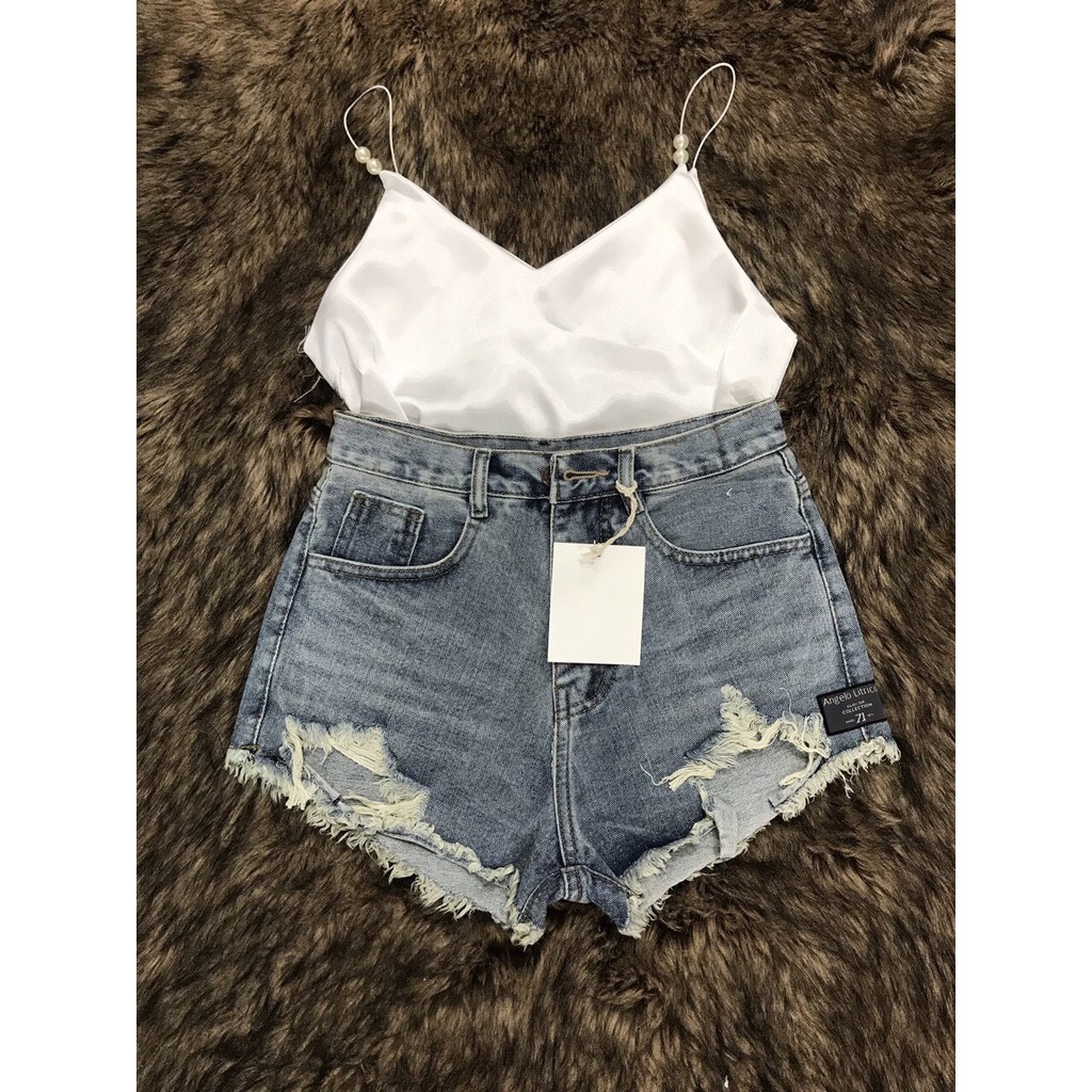 Thời Trang Nữ > Áo > Áo hai dây và ba lỗ || Áo 2 dây phối ngọc cổ V phi lụa cực hot