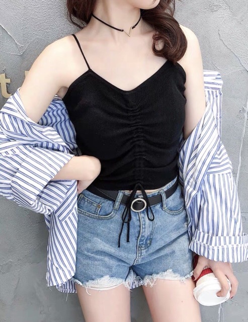 Thời Trang Nữ > Áo > Áo hai dây và ba lỗ || Áo 2 dây rút ngực cổ tim