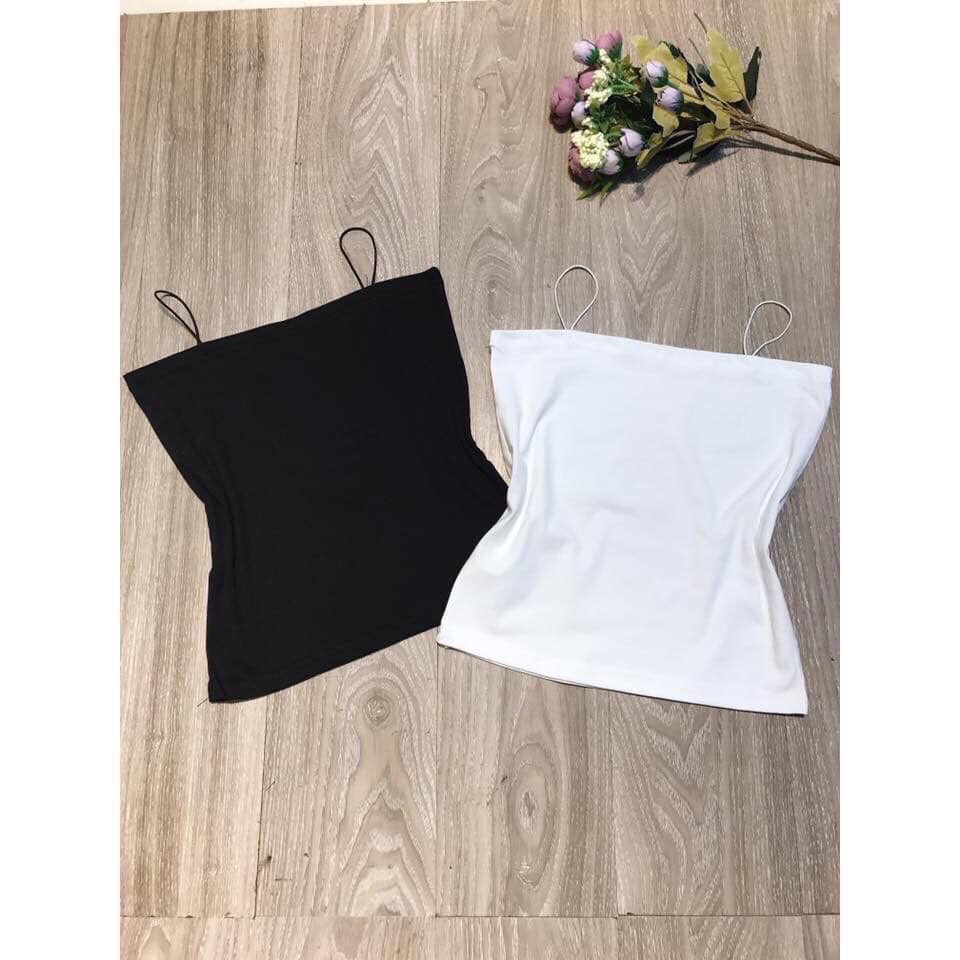 - Áo 2 dây sợi bún cotton trơn dáng crop 2 màu : Đen, Trắng