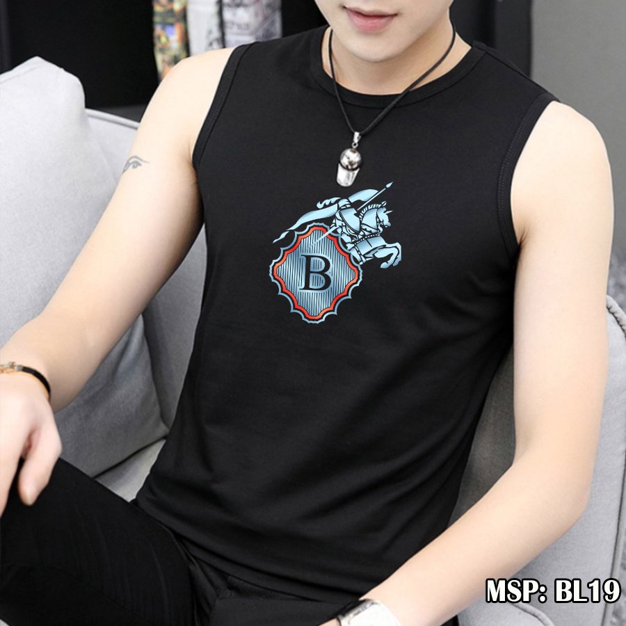 Áo ba lỗ nam màu đen họa tiết HALLA dáng thể thao chất thun lạnh kiểu lót form rộng nách tập gym, bóng rổ co giãn MS-24