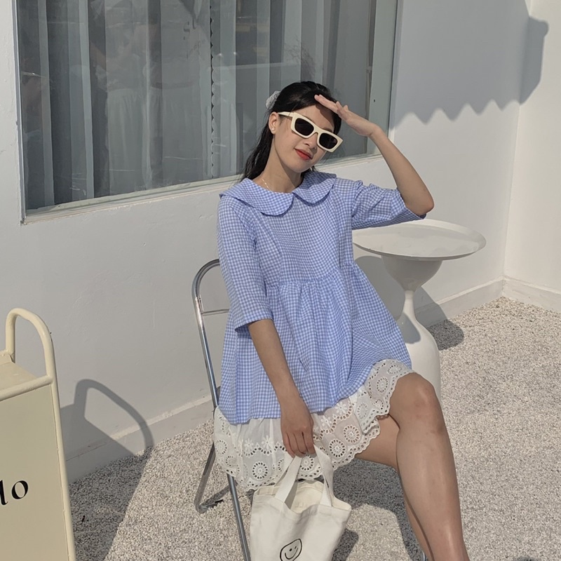 Giới thiệu Áo babydoll cổ peterpan kẻ caro TKA317 LOLLIE STUDIO