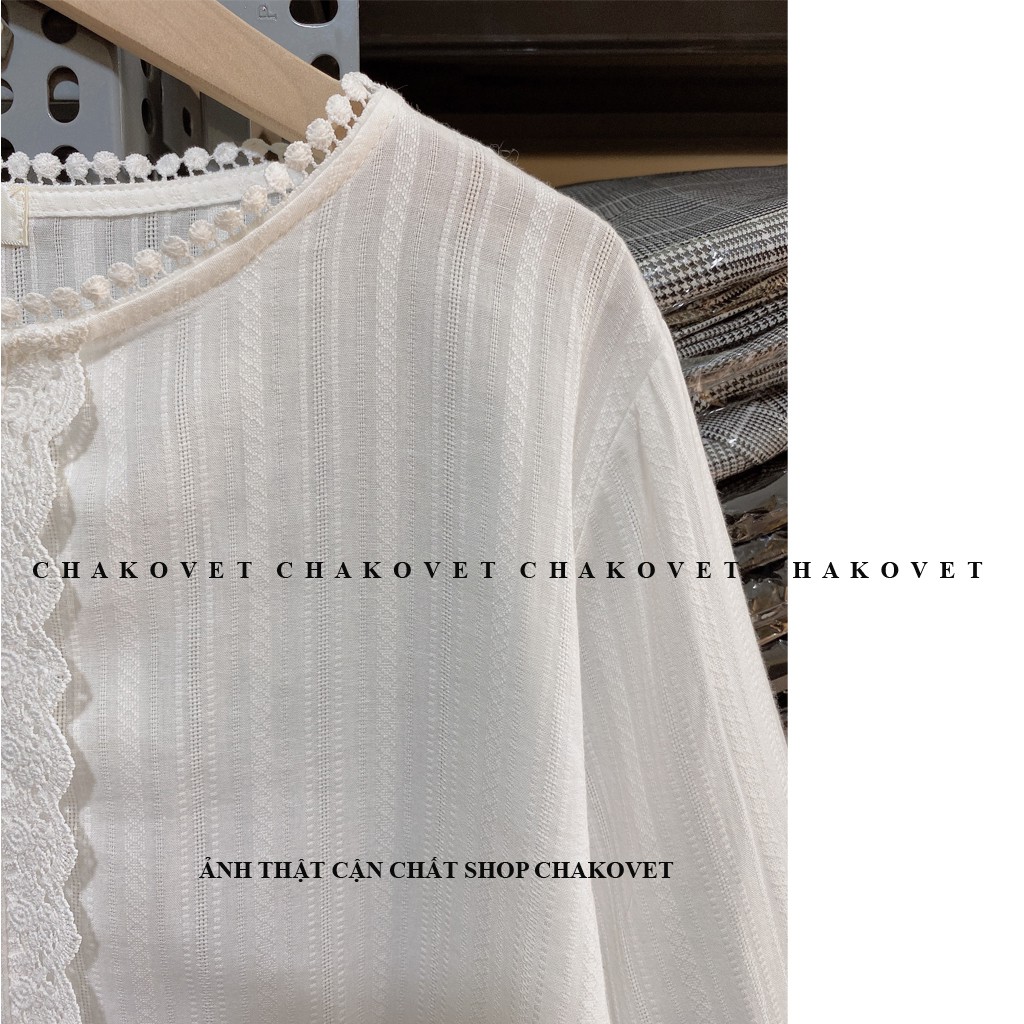 Giới thiệu Áo babydoll dài tay Chakovet, Kiểu áo sơ mi nữ có viền ren tay bồng màu trắng cực xinh Freesize<52kg -CKA103
