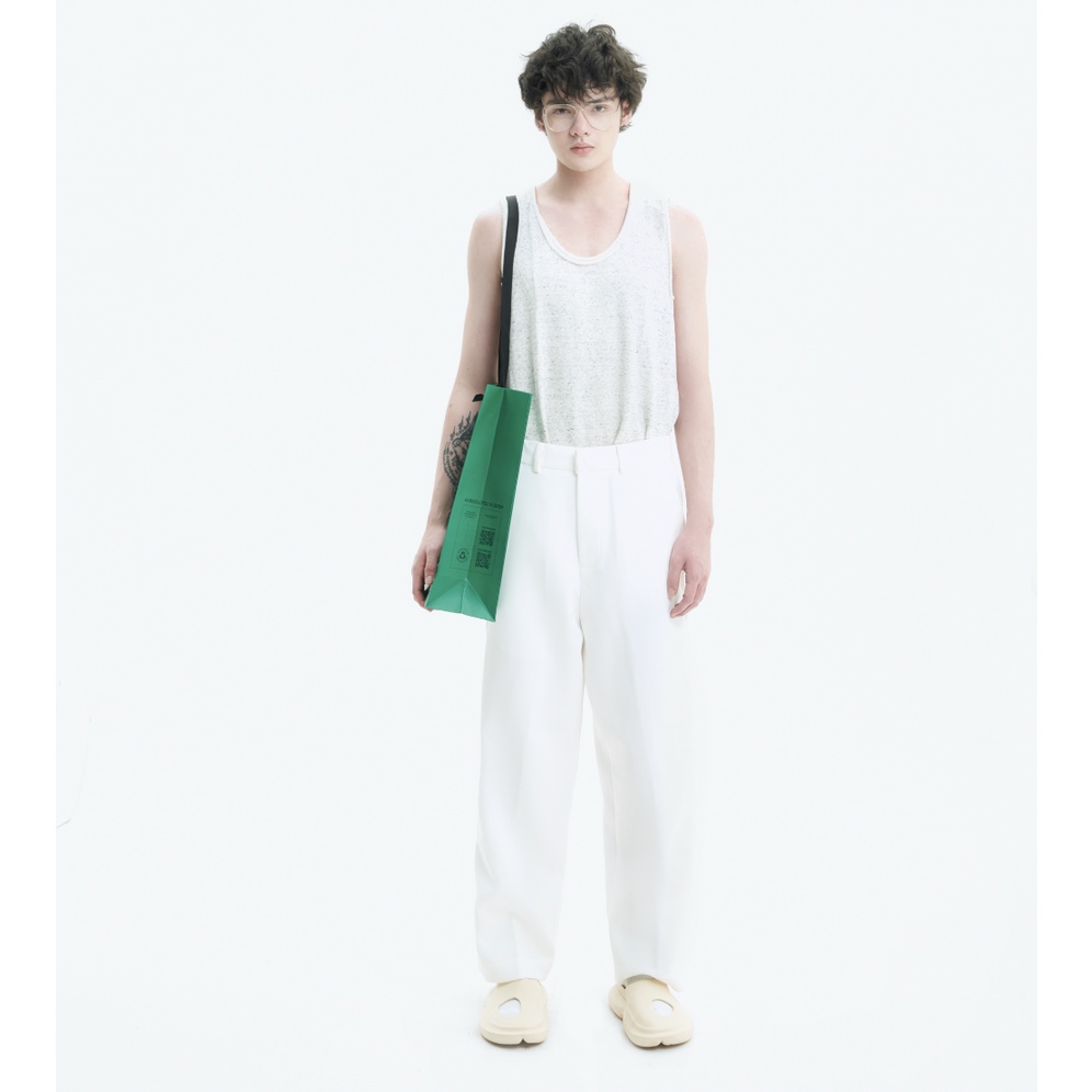 Chất liệu: Cotton thun. Áo ba lỗ cổ tim dáng dài, phom rộng, nách khoét rộng. Áo có phần mạc may trang trí ở gấu áo. Thiết kế thuộc No.33 Collection, sản xuất bởi LIDER.