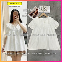 Áo bầu đẹp mùa hè, áo babydoll bầu cổ thủy thủ, Size 40-70kg, chất đũi xước, MLEE SHOP