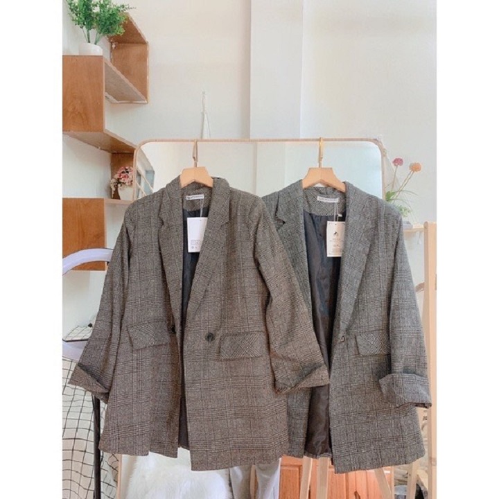 Thời Trang Nữ > Áo khoác > Áo blazer || Áo blaze kẻ xẻ tay 2 lớp mẫu mới có độn vai phong cách trẻ trung - Mono Boutique