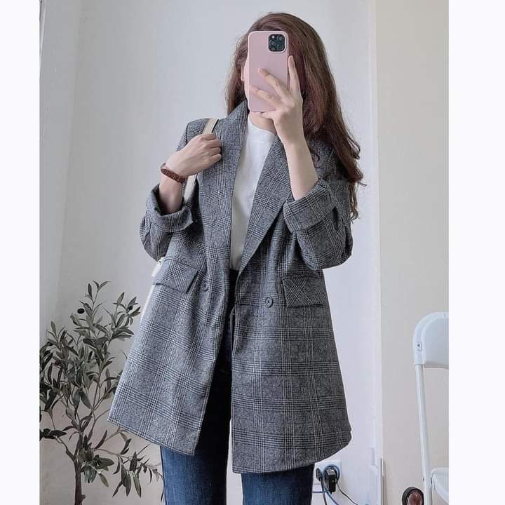 Giới thiệu Áo blaze kẻ xẻ tay 2 lớp mẫu mới có độn vai phong cách trẻ trung - Mono Boutique