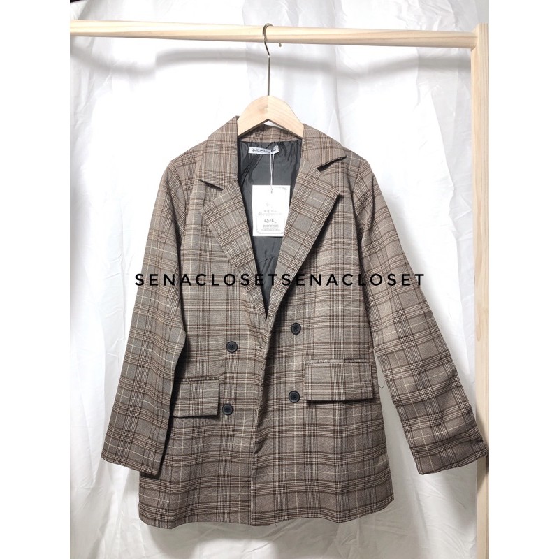 ÁO BLAZER 2 LƠP KẺ NÂU QC STYLE ULZZANG HQ ( Ảnh thật / Video)