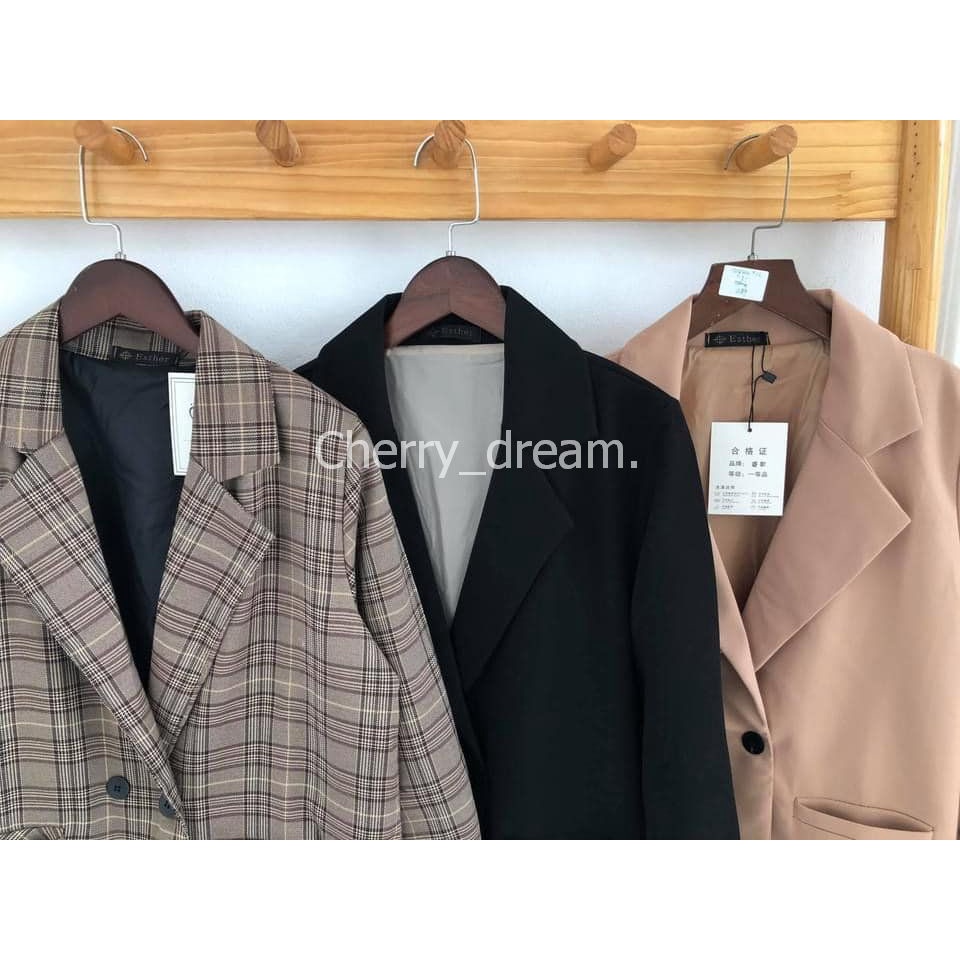 Giới thiệu Áo blazer nữ áo vest khoác ngoài phong cách hàn quốc màu đen nâu tây kẻ 2 lớp