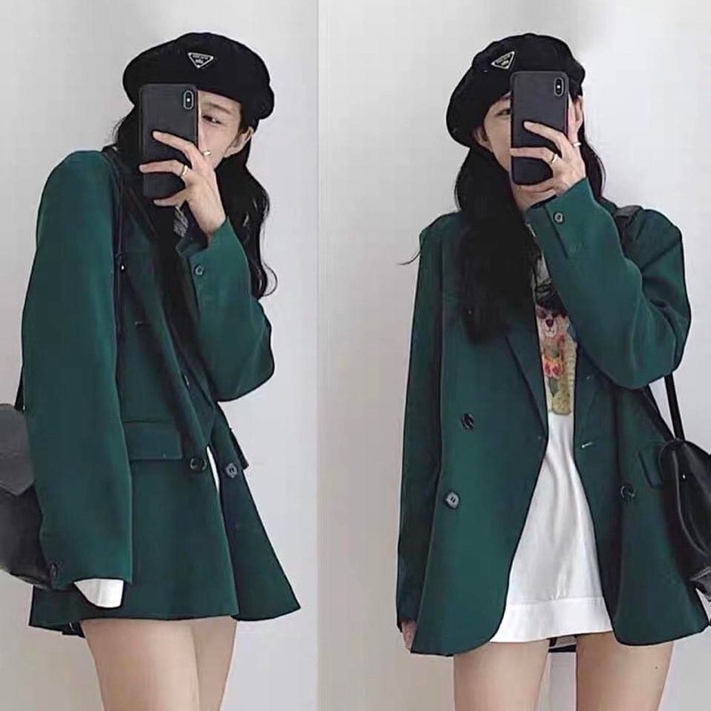 Thời Trang Nữ > Áo khoác > Áo blazer || Áo Blazer Xanh Lá Hot Trend Cộc Tay Và Dài Tay Freesize-Changstore