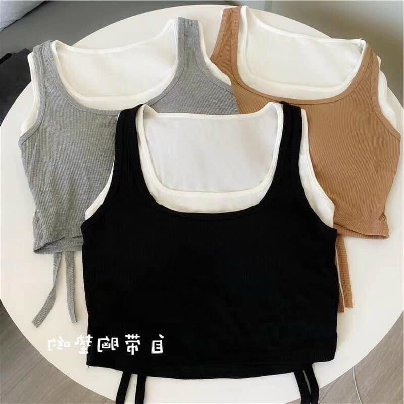 Áo bra ba lỗ dáng croptop 2 lớp có đệm ngực 2 trong 1