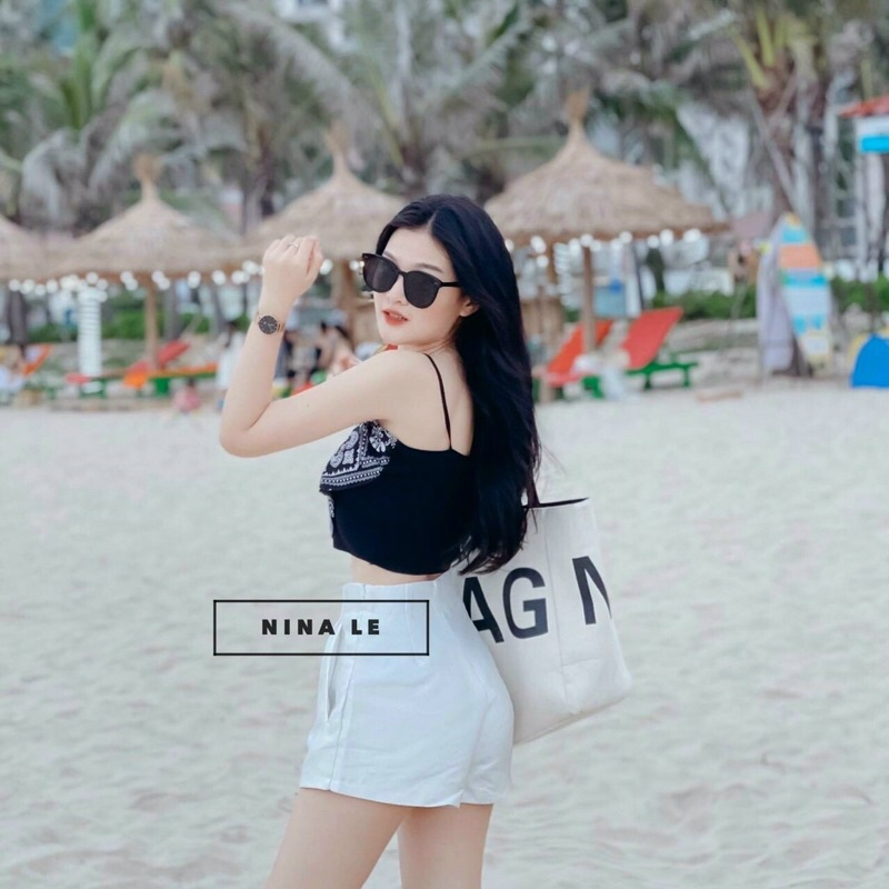 ❌❌ Áo 2 Dây Thổ Cẩm Nữ su đúc dáng croptop, phông họa tiết thổ cẩm mặc đi biển màu TRẮNG | ĐEN ❌❌