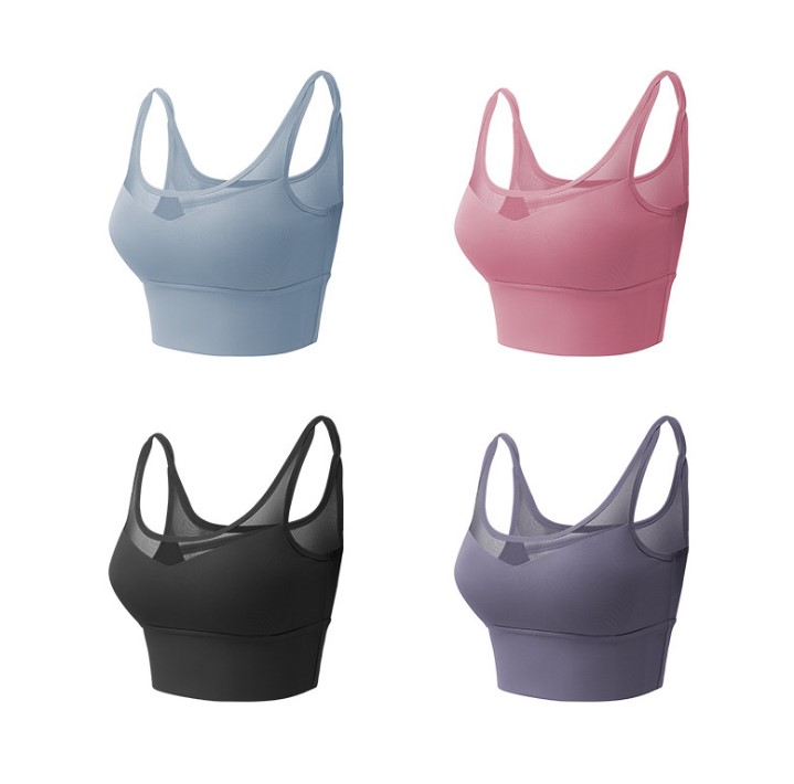 - Thiết kế áo bra tập GYM nữ có đệm mút, nâng đỡ vòng 1, ôm sát ngực dưới của người mặc - Kiểu dáng thể thao sexy với phần lưng phối lưới, kết hợp viền lưới mặt trước.