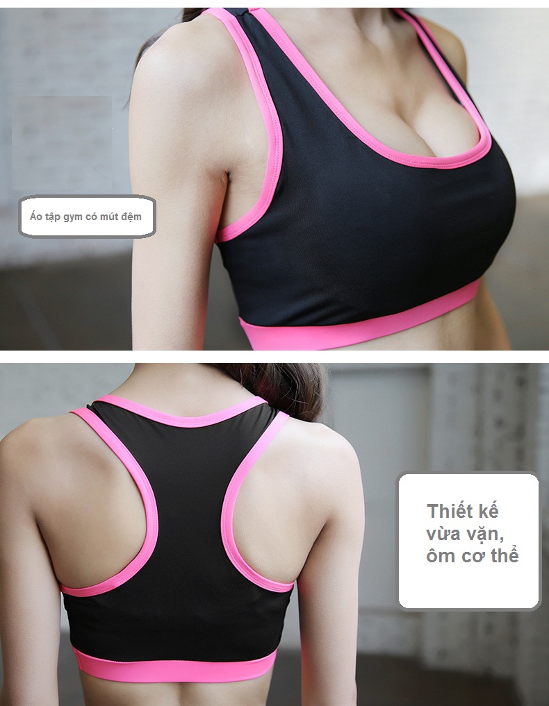 Áo có lớp lót đệm giữ ngực, các bạn chỉ cần mặc một chiếc áo này đến phòng tập là đủ.