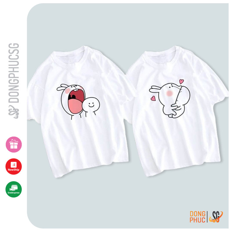 Áo cặp nam nữ dễ thương thun cotton mềm mịn cổ tròn tay ngắn màu trắng form unisex AC111T | SG