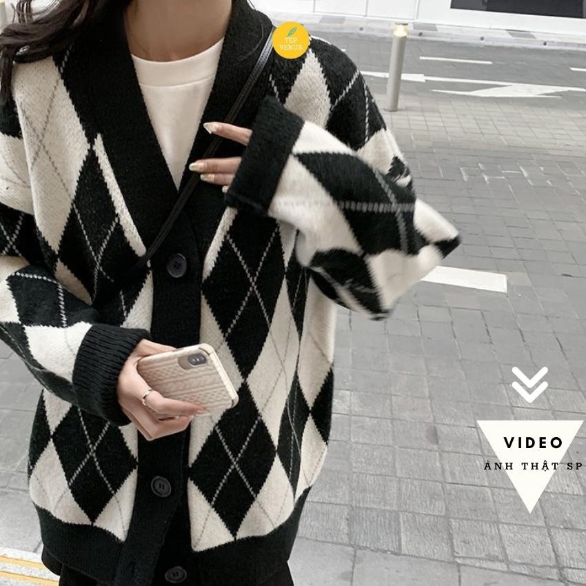 Áo Cardigan Len Nữ , Áo Khoác Len Nữ Dáng Rộng Hoạt Tiết Quả Trám Dày Dặn Tep Venus