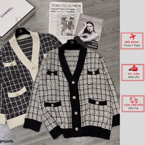 Giới thiệu Áo cardigan len nữ dáng dài kẻ caro đen trắng ulzzang Hàn Quốc cá tính
