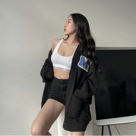 Giới thiệu Áo Cardigan Nỉ Bông Form Rộng Thêu Logo M - Áo Khoác Nỉ Trơn Basic 2 Màu Đen Trắng AK006
